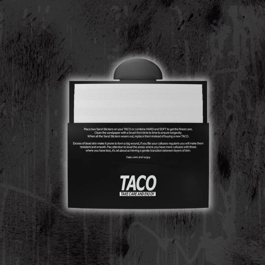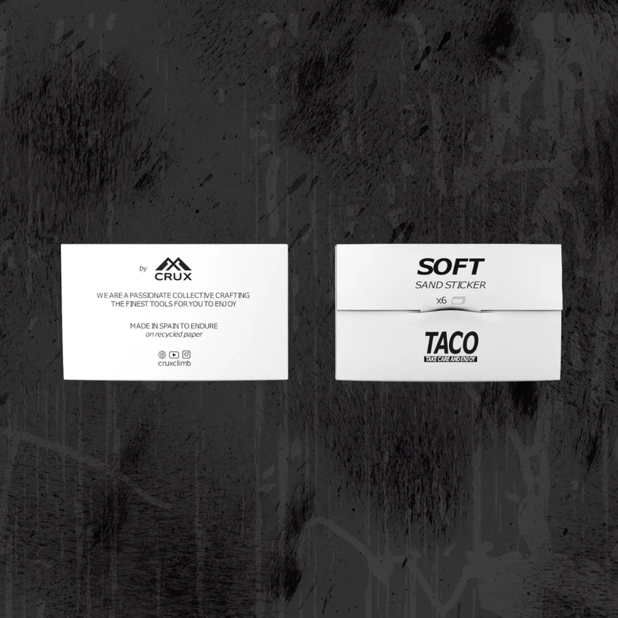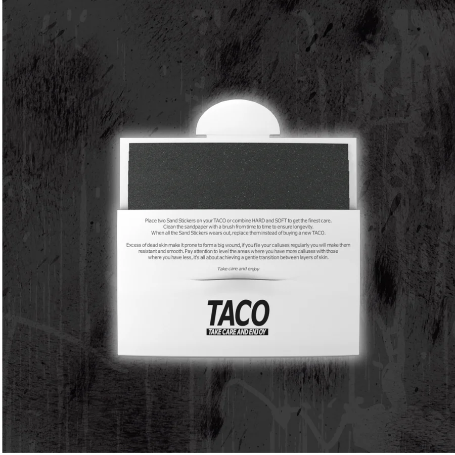 Crux Taco Sandpaper Replacement refills are available in two levels of 150 Grit SOFT / 100 Grit HARD sandpaper to choose according to the type of skin. Each sandpaper sticker can be divided, allowing different intensities to be combined in the same TACO. 6 stickers per pack.