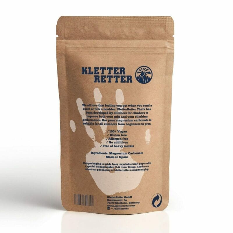 We all love that feeling you get when you send a route or tick a boulder. KletterRetter crunchy chalk has been developed by climbers for climbers to improve both your grip and your climbing performance. Our pure magnesium carbonate is suitable for all climbers from beginners to pros.