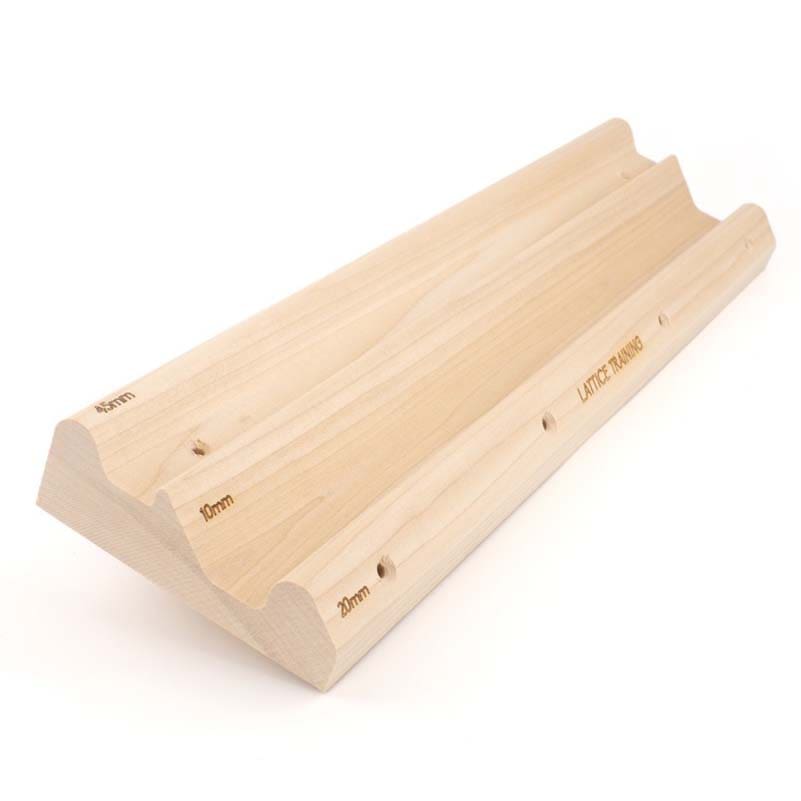 The Lattice Triple Rung Hangboard is a powerful training tool designed to help climbers objectively measure, track, and build finger strength. With its three edge depths – 45mm for warming up and pull-ups, 20mm for benchmark testing and training, and 10mm for advanced crimp strength – it supports climbers at every stage of their progression.