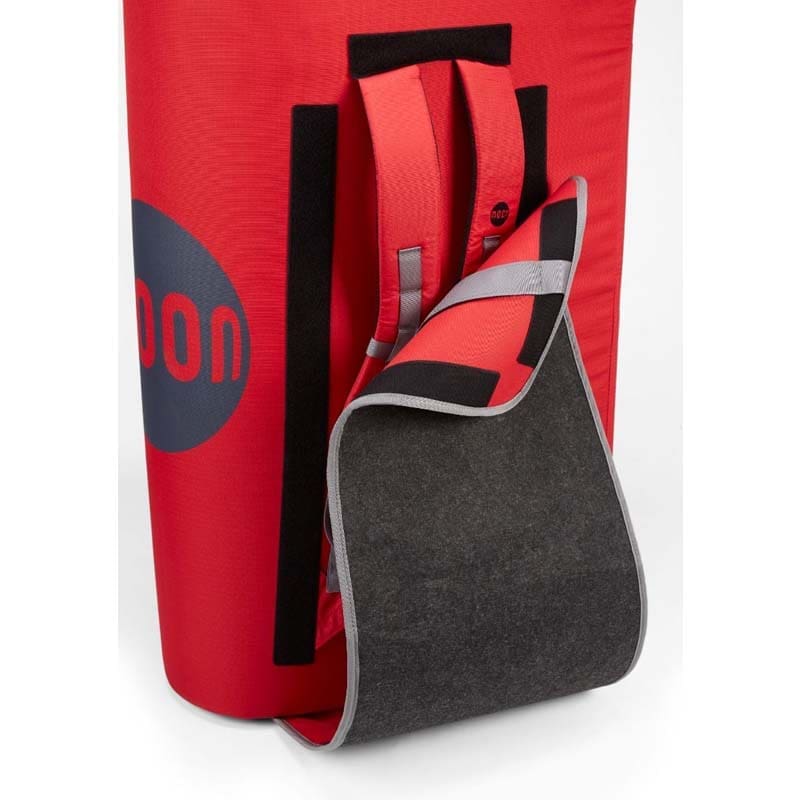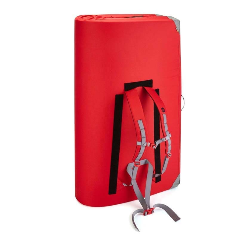 For convenience, the Saturn Pad has padded carry straps on the landing side. These straps are covered by a Velcro foot mat when the pad is in use, ensuring they don’t interfere with your landing. When folded, this mat wraps under the pad, allowing you to carry extra gear inside.
